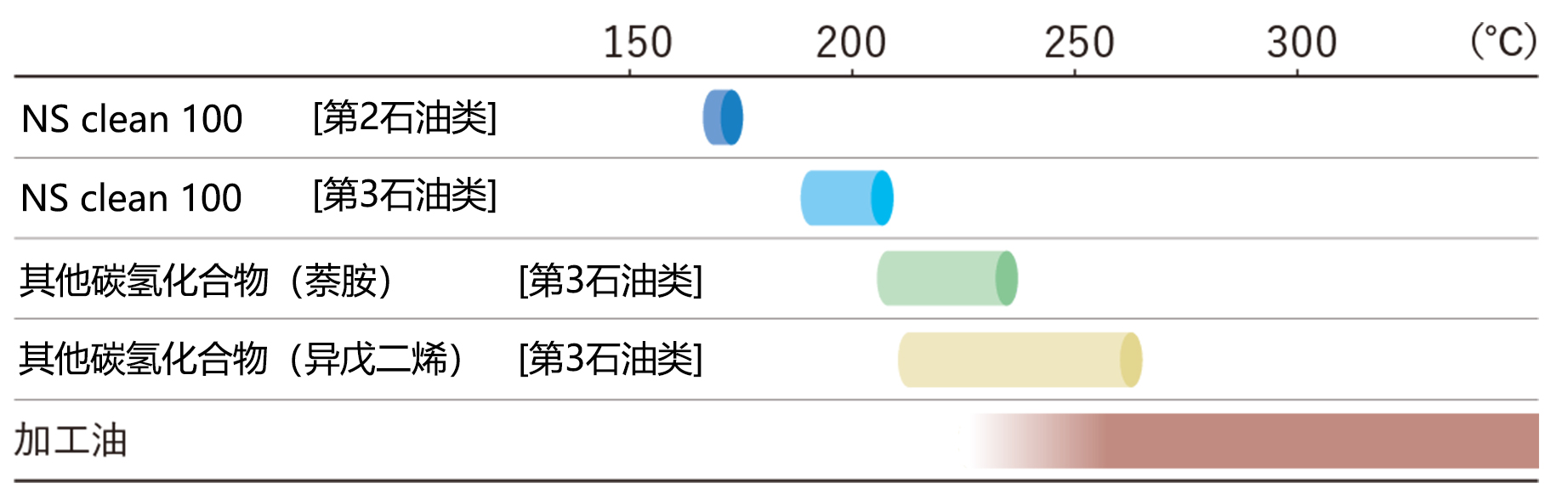 “eneos清洗劑® ”具有窄的沸點范圍,并且不包含難以干燥的重質組分,因此它具有優異的干燥性。