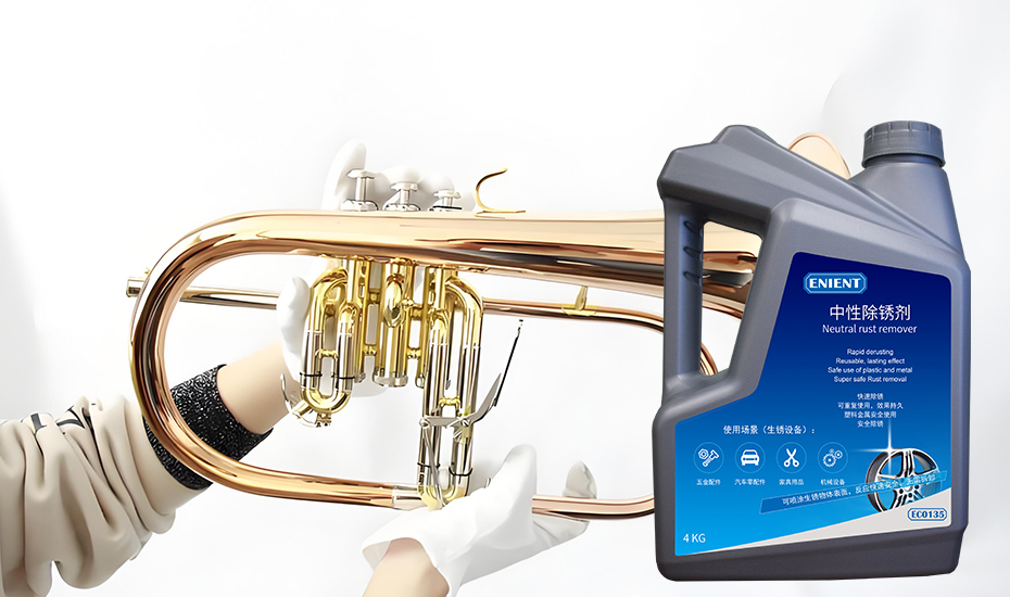 ENIENT®EC0135中性除銹劑橫空出世,為樂器愛好者們帶來了一種全新的、簡便的解決方案。作為一種專為黃銅和其他銅制品設(shè)計(jì)的除銹劑,這款中性除銹劑有著無與倫比的便捷性。它是一種中性配方,既能高效除去銹跡,又不損傷黃銅表面。這一點(diǎn)尤為重要,因?yàn)樵S多化學(xué)除銹劑雖然可以清除銹斑,但它們的強(qiáng)烈酸性或堿性可能會腐蝕黃銅樂器的表面,甚至影響其結(jié)構(gòu)穩(wěn)定性,得不償失。