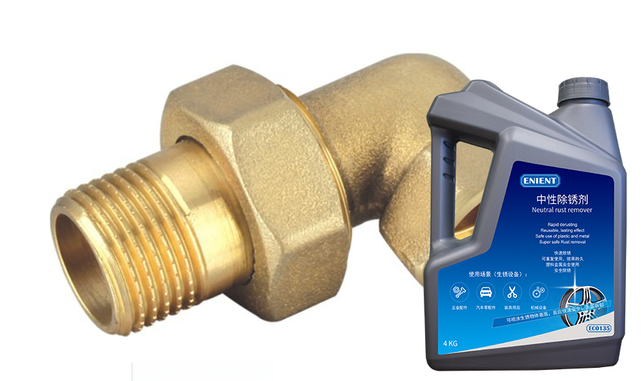 ENIENT®EC0135中性除銹劑給您解決問題,為解決黃銅管件生銹問題提供了一種理想的解決方案。作為一款中性除銹產品,這款中性除銹劑不僅針對黃銅管件的生銹問題設計,而且在除銹的同時能夠保證黃銅材質不受腐蝕。其主要優勢有以下幾點:
