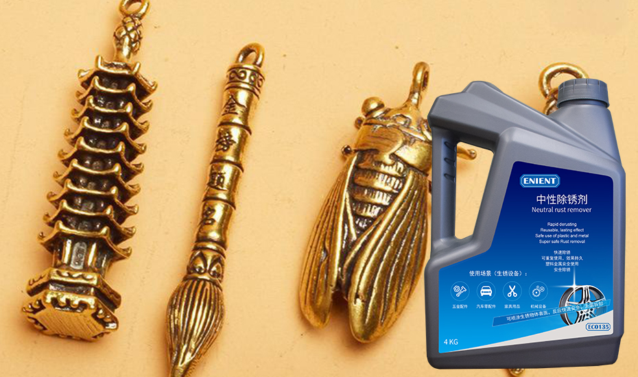 ENIENT:EC0135黃銅除銹劑采用中性溫和的配方,不僅能快速有效去除銹跡,還能恢復黃銅的光澤。并且表面不會鈍化。也不會影響后續噴漆。