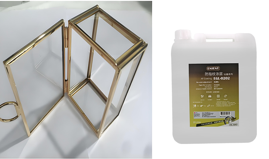 改性樹脂涂層結合油性納米技術是一種革新的產品。以ENIENT EGL0202單液免烤型防指紋油為例,噴上自干即可達到比烘烤更強的性能,并且透明度高,做出來的不銹鋼制品十分高檔。