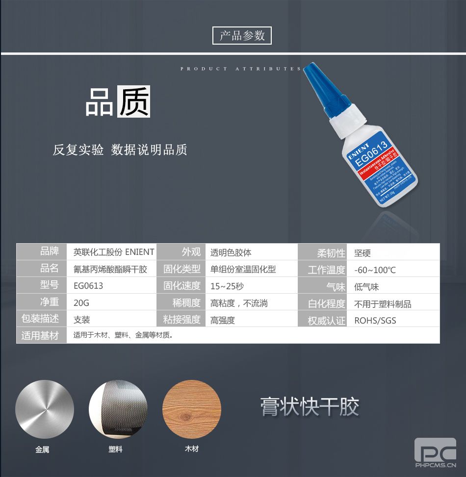 ENIENT EG0613快干膠15~25秒固化木材塑料金屬膏狀高強(qiáng)度透明20G