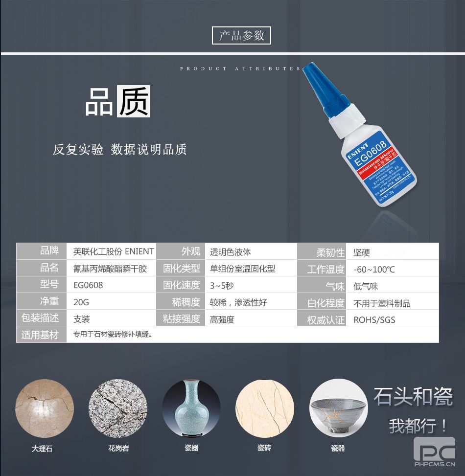 ENIENT EG0608快干膠石材瓷磚修補填縫3~15秒超快干高強度透明20G