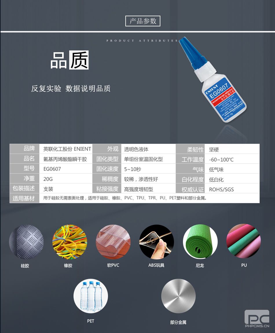 ENIENT EG0607快干膠硅膠橡膠PVC/TPU/TPR/PU/PET塑料和金屬粘接5~10秒超快干高強(qiáng)度無白化透明20G