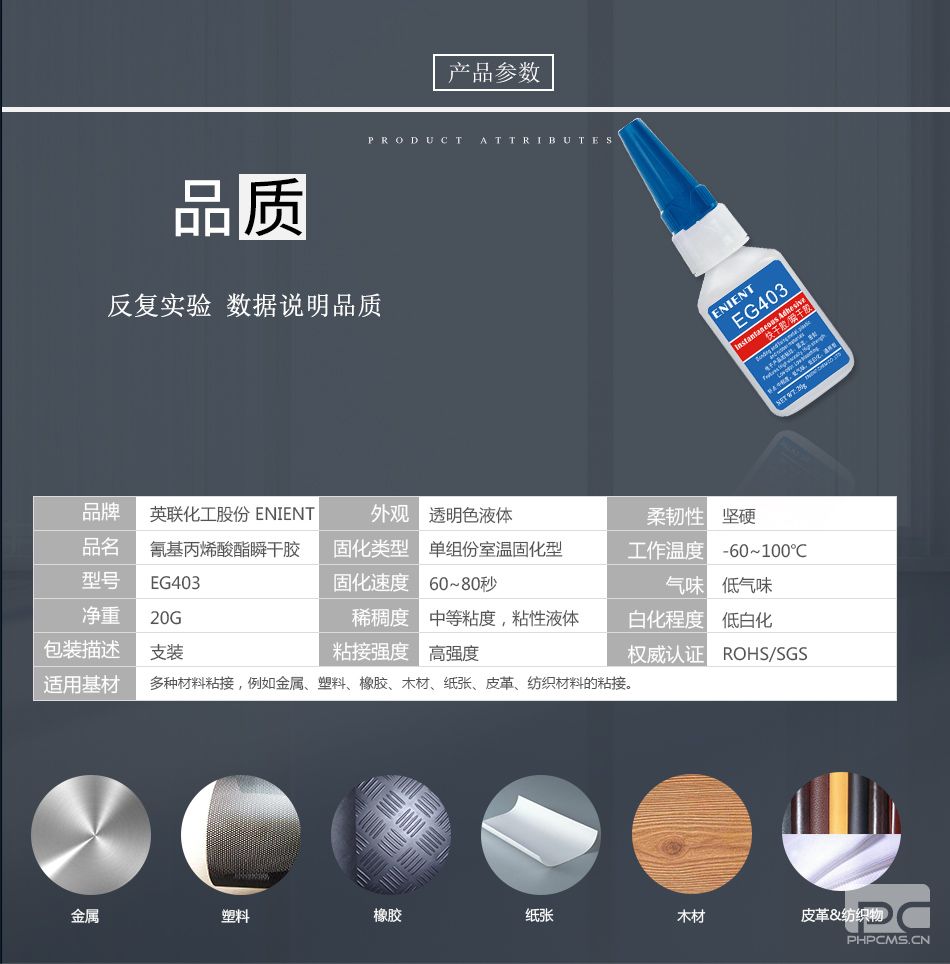 ENIENT EG403快干膠金屬塑料橡膠紙張皮革紡織材料2分鐘固化無(wú)白化透明20G