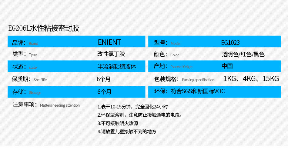 ENIENT EG1023 粘接密封膠用途廣泛,在﹣60℃~100℃溫度下性能穩定。